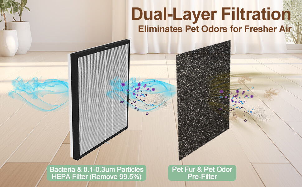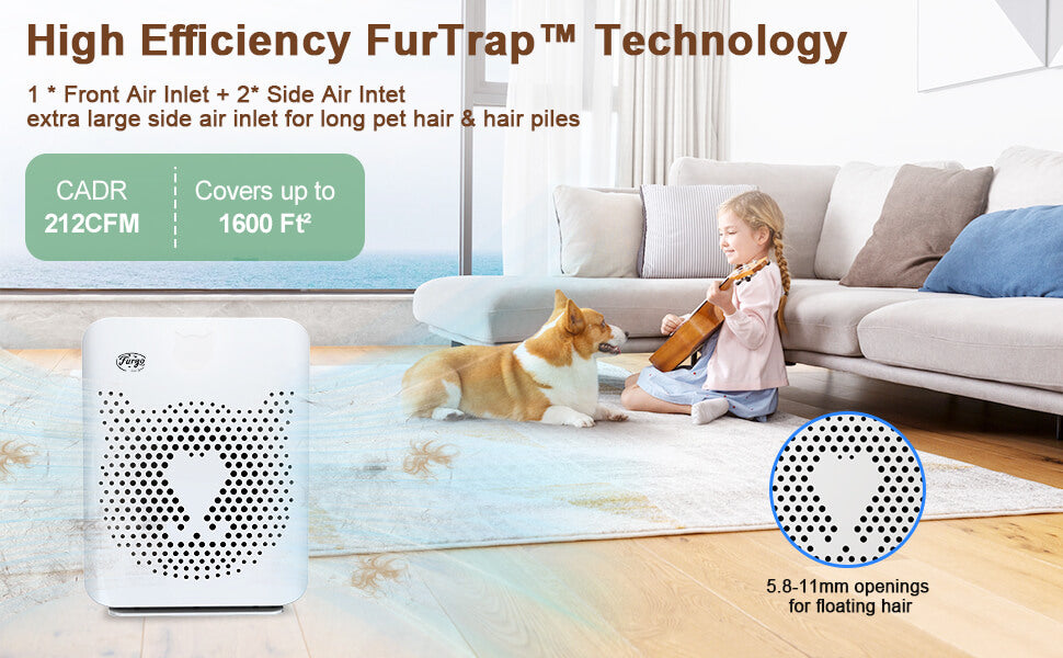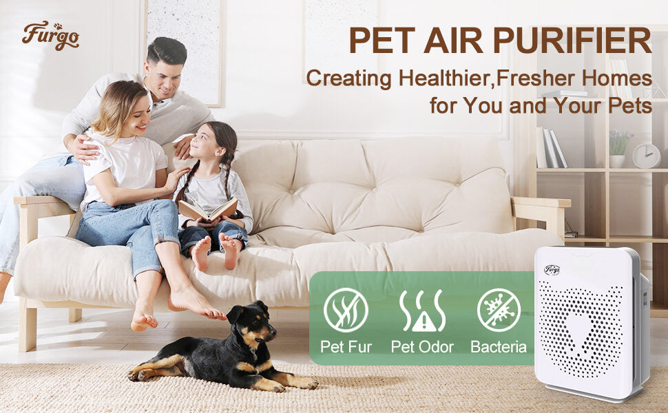 The Furgo Pet Air Purifier is specially designed for pet households. It effectively filters pet fur, removes odors, and eliminates bacteria, creating a cleaner and healthier living environment for you and your pets. Perfect for sensitive individuals and pet owners, this air purifier ensures every breath is more comfortable and refreshing.