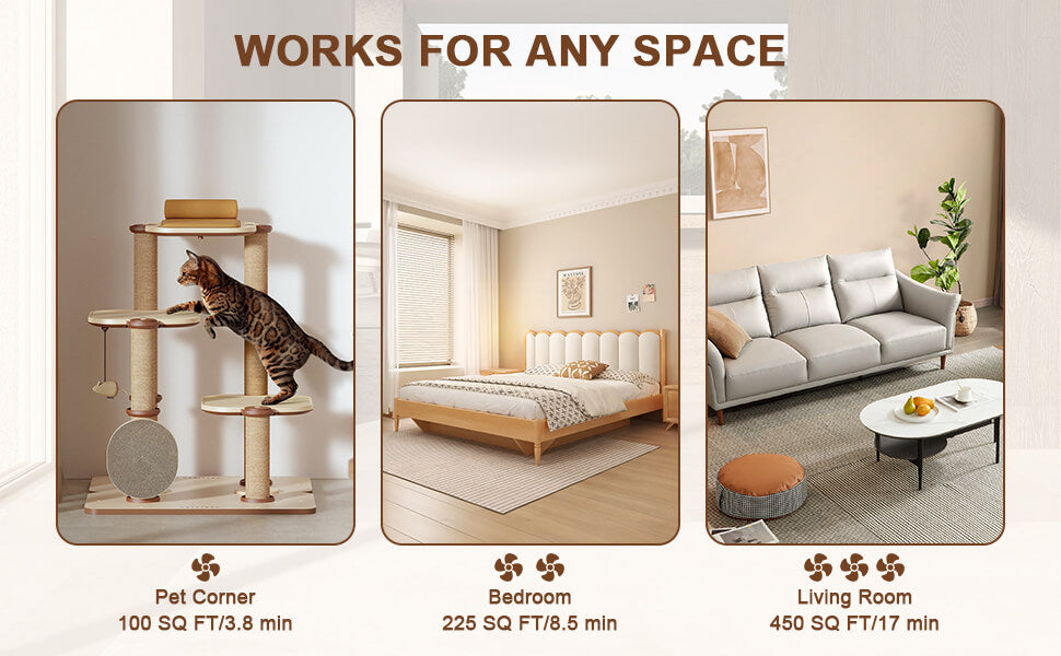 - Pet Corner (100 SQ FT): Quick 3.8-minute purification for fresh small spaces.